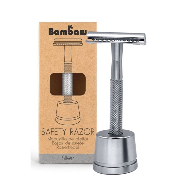 BAMBAW Sicherheits-Rasierer m Stand Metall silber